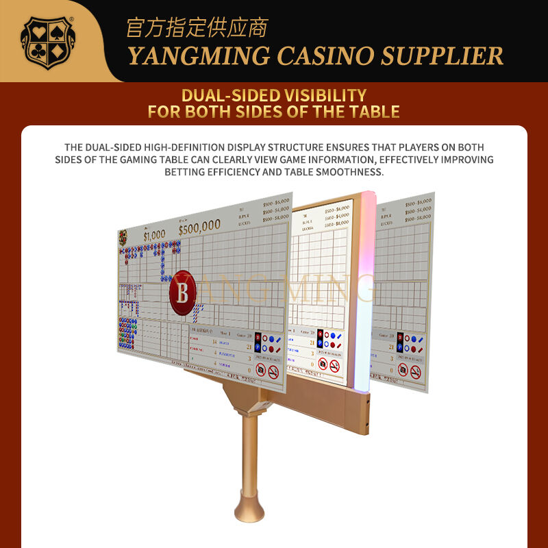 कैसीनो प्रदर्शनचमकदार एलईडी प्रकाश व्यवस्था और एक पतली, आधुनिक डिजाइन, दोनों पक्षों से स्पष्ट दृश्यता सुनिश्चित करता हैतालिका. यह निरंतर कैसीनो संचालन के लिए बनाया गया है, यह स्थिर प्रदर्शन, जीवंत ग्राफिक्स और व्यापक देखने के कोण प्रदान करता है. बैकारेट और अन्य टेबल गेम के लिए आदर्श, यह अनुकूलन योग्य सामग्री का समर्थन करता है,बहुभाषी प्रदर्शन, और खेल प्रबंधन दक्षता और समग्र कैसीनो प्रस्तुति को बढ़ाने के लिए लोगो ब्रांडिंग।